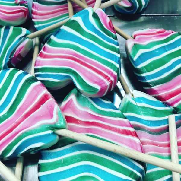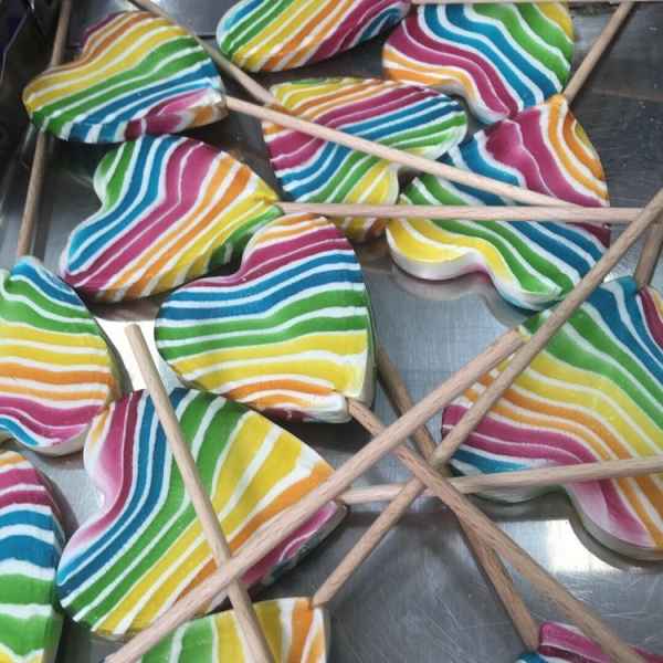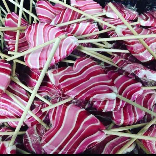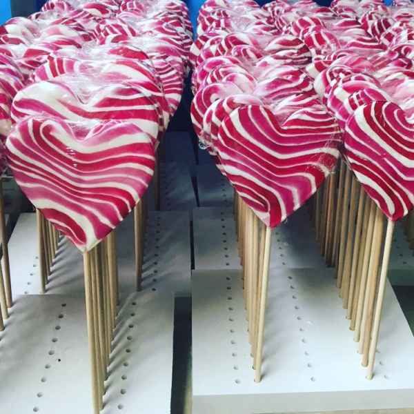 Proizvodimo lizalice u obliku srca raznih dimenzija. Po potrebama i željama klijenata lizlice izrađujemo u raznim prirodnim bojama i aromatiziramo ih prirodnim aromama.